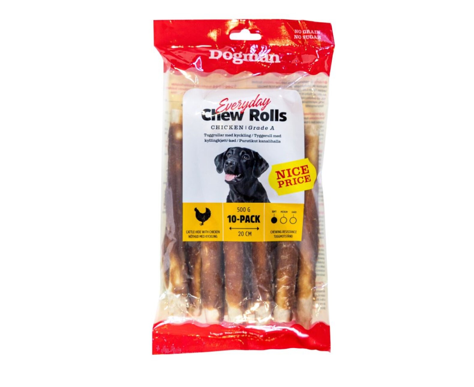 Dogman Chew Rolls med smag af Kylling 10-stk.Tygge stave med velsmagende kylling. Let at tygge og er derfor perfekt til hunde, der har brug for mindre tyggemodstand.