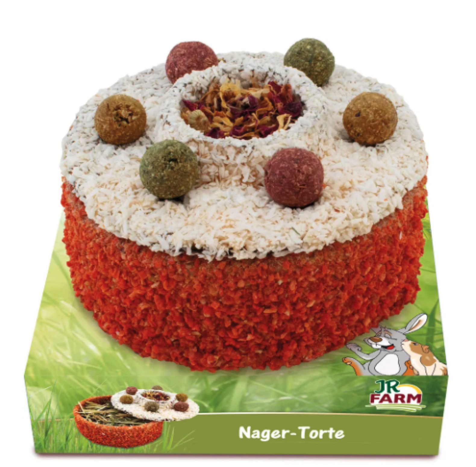 Fyldt med aromatiske græsser og urter og dækket med vitaminrige gulerødder, duftende kokosflager og lækre praliner. Sunde bær og grøntsager, såvel som værdifulde blomster, understøtter forskellige vitale funktioner og sikrer intens smag og velvære. Denne stilfulde kage kan genopfyldes igen og igen takket være det aftagelige låg. Takket være forarbejdningen af rent naturlige og ubehandlede komponenter kan den også spises hel.30 dages returret