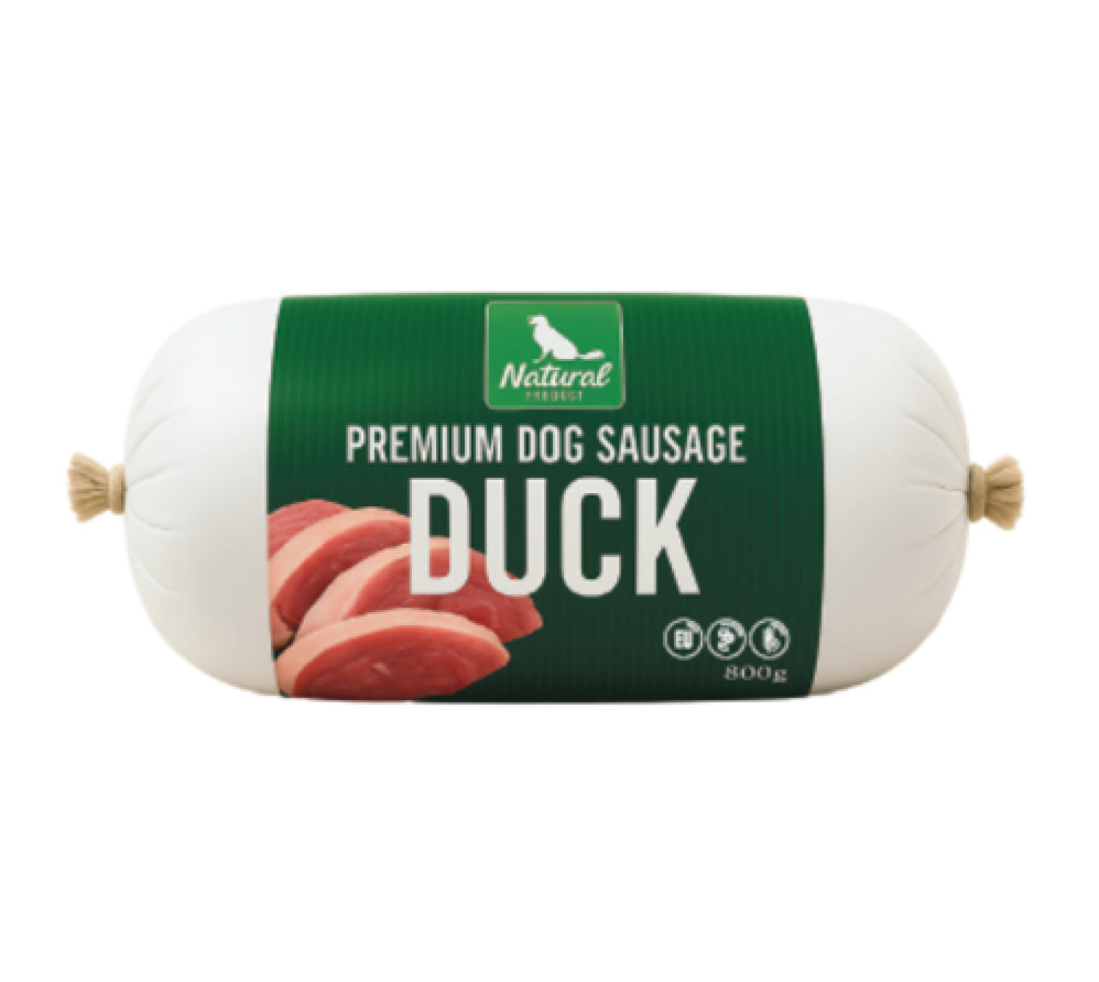 Smagfuld og velsmagende andepølse, ideel til kræsne hunde. Uden tilsætning af konserveringsmidler, farvestoffer og smagsstoffer. 100 % naturlig. Velegnet til hunde over 3 måneder. Fremstillet af 100 % naturlige ingredienser – farve og tekstur kan variere.Råaske 1,1 %; Råprotein 12,1 %; Råfedt 8,5 %; Råfibre 0,3 %; Fugtighed 64,9 %