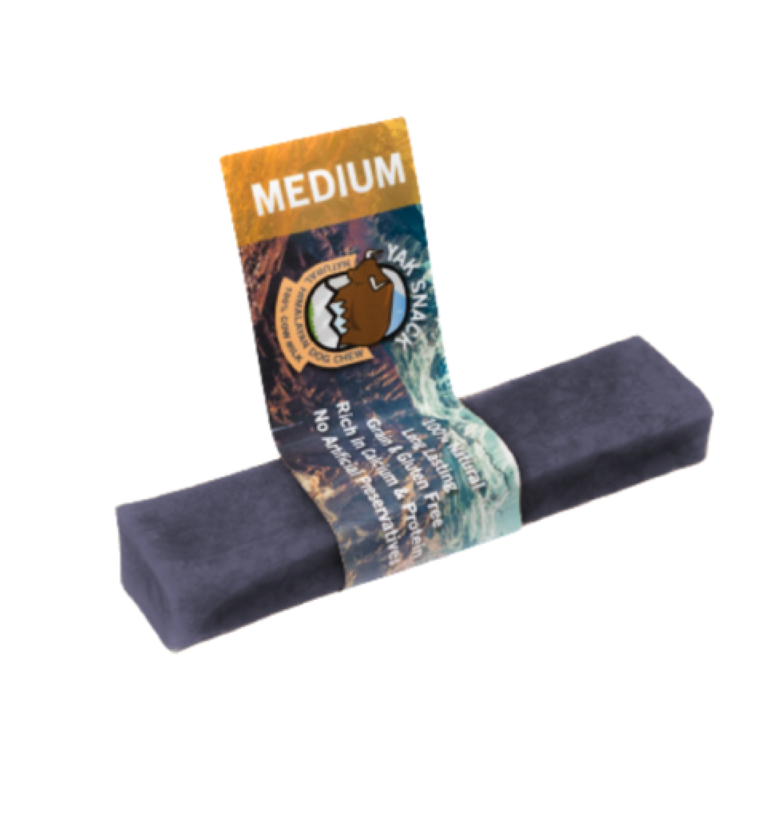 Yak Snack m. blåbær er drøj i brug og giver lang tyggetid til din hund. Tyggebenet bliver blødere, når hunden tygger på det.