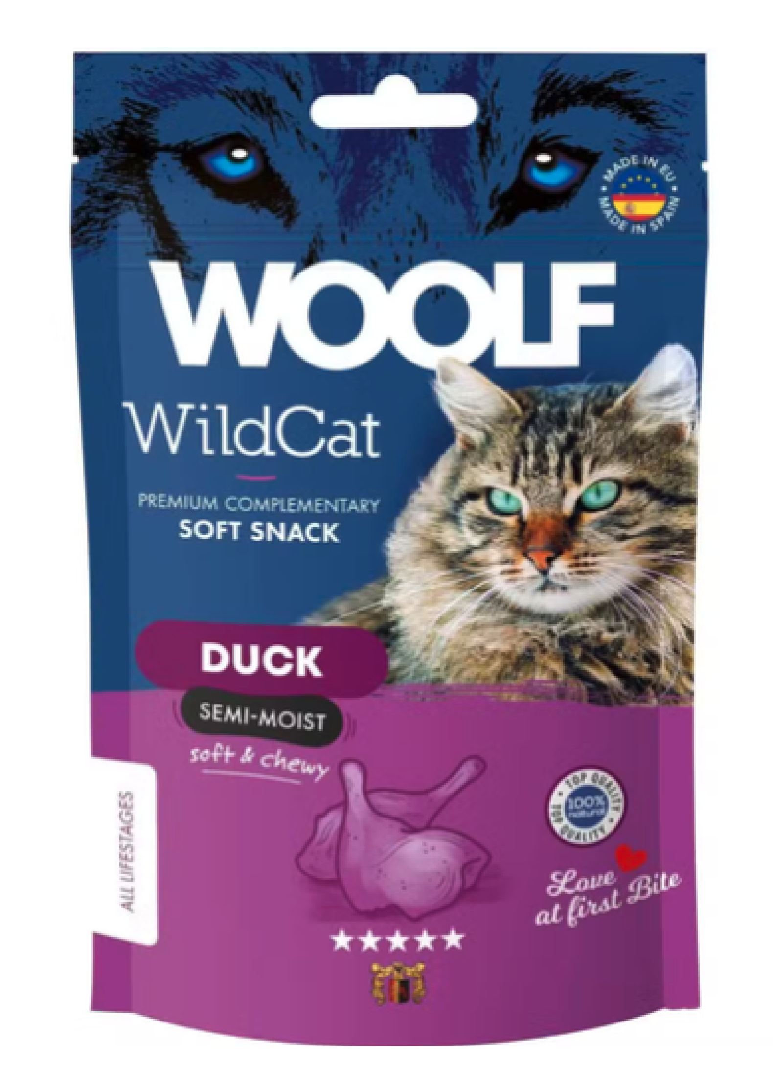 Woolf WildCat er velsmagende semi-moist godbidder til din kat.Forkæl din kat med Woolf WildCat – lækre godbidder, der er fremstillet med omtanke og fokus på kvalitet. Godbidderne er slow-cooked, som er en metode, der bevarer ingrediensernes naturlige egenskaber, samtidig med at smagen træder tydeligere igennem.