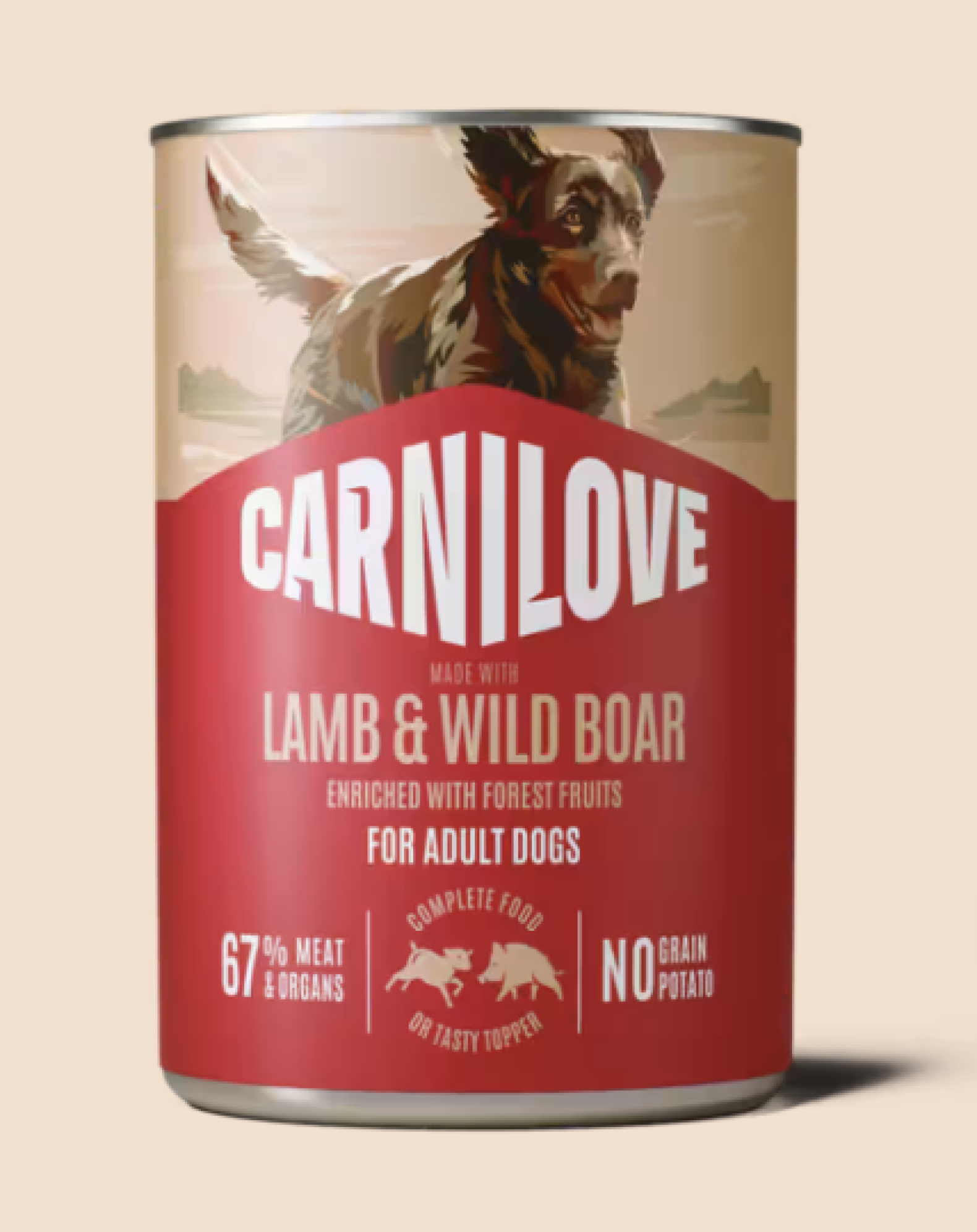 Lamb (35%), wild boar (32%), water, blackcurrant (2%), pea flour (2%), lignocellulose (1%), calcium carbonate (0.3%).30 dages returret
